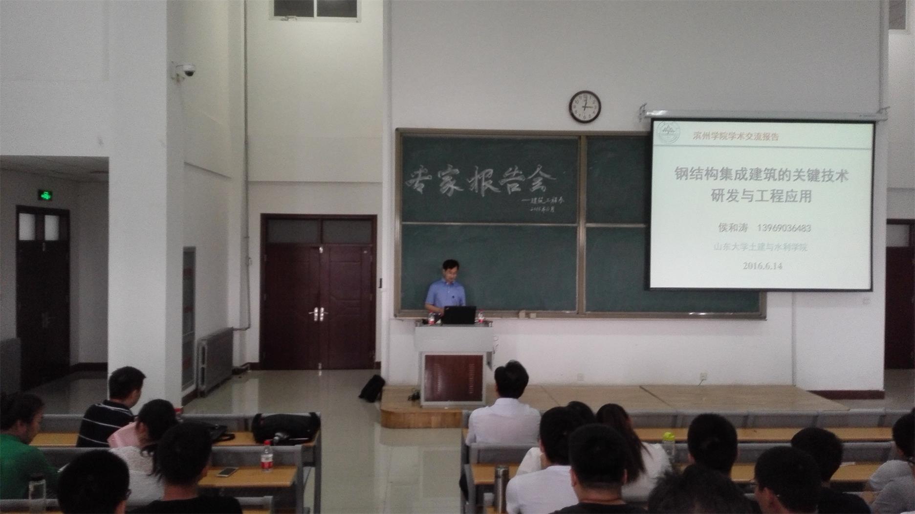 6月14日,山东大学土建与水利学院侯和涛教授应邀来校,在8教305教室作了题为“钢结构集成建筑的关键技术与工程应用”的报告。