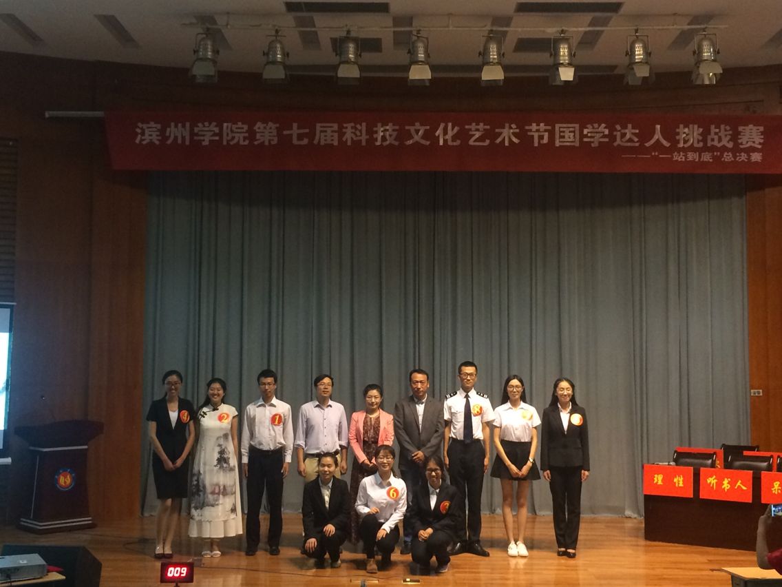 5月23日下午3点,我院参与了以“弘扬传统文化,争做国学达人”为主题的共青团滨州学院委员会主办、滨州学院学生会与人文学院团总支承办的滨州学院第七届科技文化艺术节“一站到底”国学达人挑战赛。