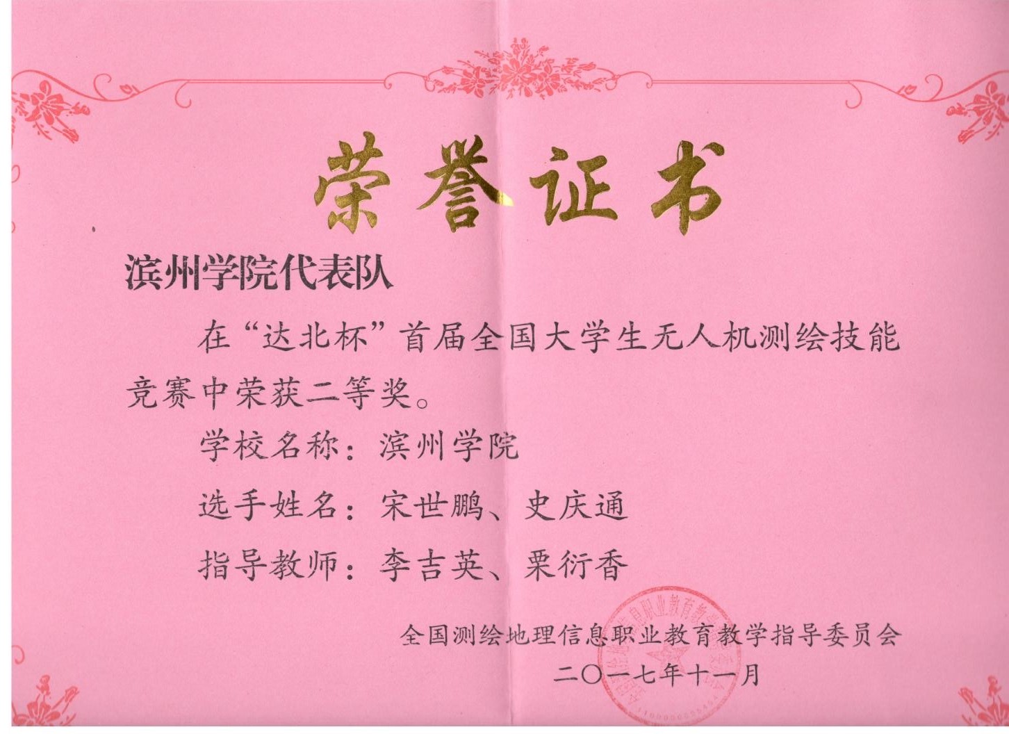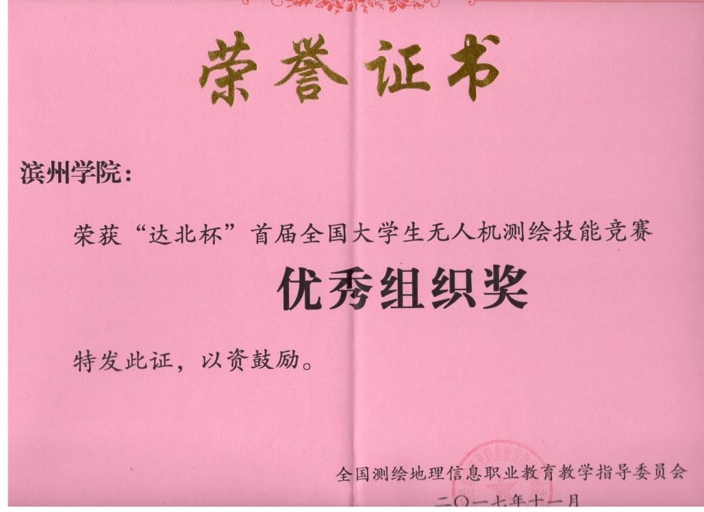 11月3日—6日,由教育部全国测绘地理信息职业教育教学指导委员会主办的“达北杯”首届全国大学生无人机测绘技能竞赛在河南省南阳市成功举办,由我院师生组成的参赛团队荣获全国二等奖,同时我校被授予优秀组织奖。