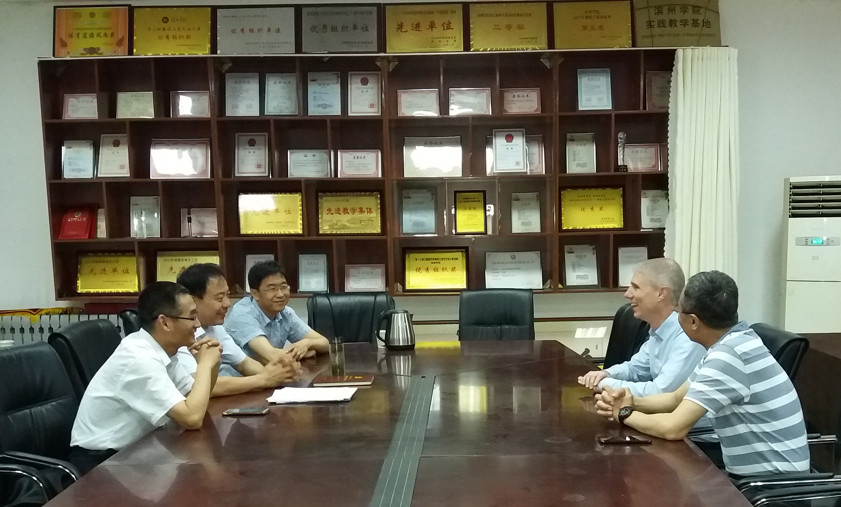 左登华对来访客人的到来表示热烈欢迎,并从办学历史、办学条件、办学特色等方面介绍了学校及我院的基本情况并提出合作办学的希望。James Monahan对学校及我院取得的办学成就给予了高度评价,并介绍了南伊利诺伊大学爱德华维尔兹分校基本情况以及与我院学科与专业的前期对接情况。双方就太阳集团、国际化合作办学的“2+2”模式合作协议事宜进行了深入交流和探讨,并达成了共识,将进一步加快推进相关工作开展。