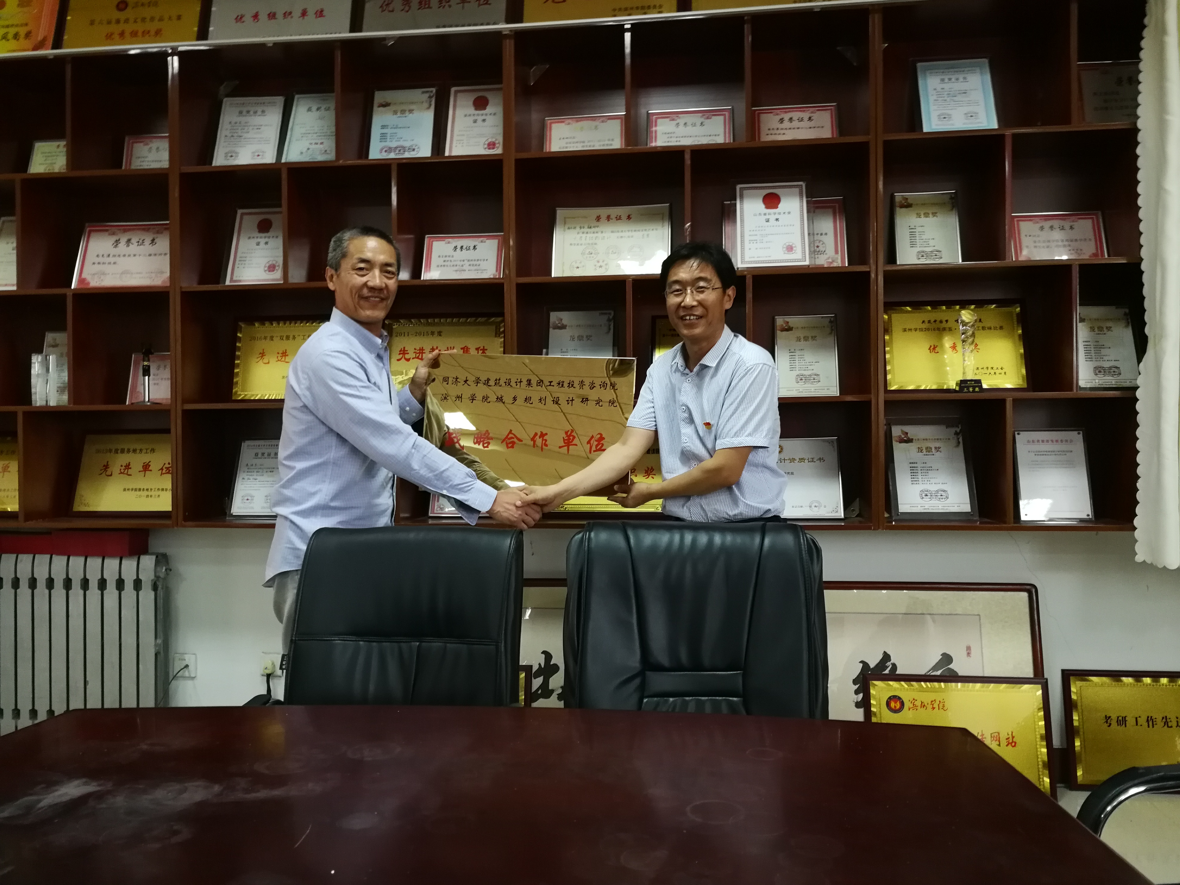6月26日,滨州学院城乡规划设计研究院与同济大学建筑设计(集团)有限公司工程投资咨询院战略合作单位签约仪式在滨州学院举行。TJAD工程投资咨询院副院长周茂刚与滨州学院建筑工程学院党总支许广生书记出席仪式,并共同揭牌。