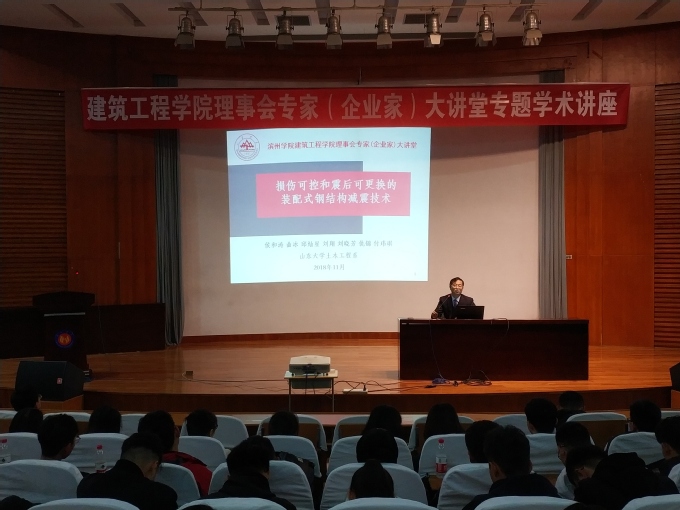 11月5日,我院理事会专家大讲堂在学苑会堂第二报告厅举行第四场学术讲座,邀请山东大学博士生导师侯和涛教授作“损伤可控和震后可更换的装配式钢结构减震技术”的学术讲座。