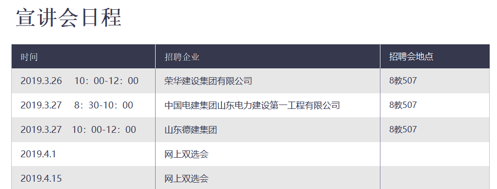 2019年3月26日至27日宣讲会日程安排