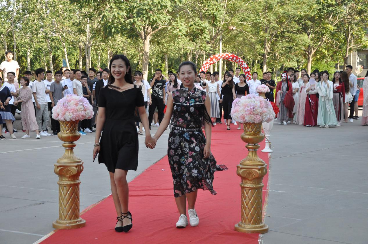 “笨拙系上红色领带的结,将头发梳成大人模样,穿上一身帅气西装,好想再回到那些年的时光”如同歌词所唱,伴随轻松愉悦的音乐,红毯秀在歌舞串烧中拉开帷幕,女生画上精致的妆容,身着典雅的汉服,男生身着西装,手牵挚友款款走上红毯惊艳亮相,在背景墙下合影留念,无人机航拍留下毕业生的如花笑靥。红毯秀期间,师生表演了精彩的文艺节目,一首首动听的歌曲引起了现场阵阵高潮。