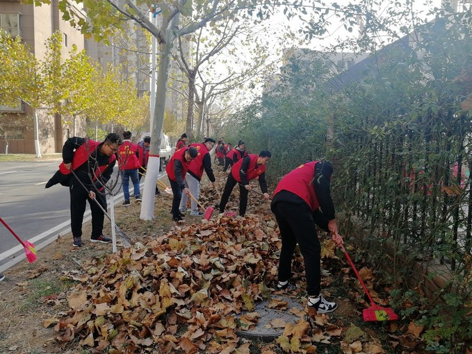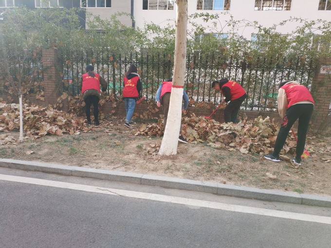 活动中,党员志愿者发扬不怕脏不怕累的优良作风和团结协作精神,身穿红马甲,手拿扫帚、铁钳、塑料袋、铁铲等劳动工具,对学苑花园道路两旁进行全方位的落叶清扫。各位党员分工协作,他们有的拿扫帚清扫地面落叶,有的弯腰拔除路边杂草,大家干得热火朝天。每清扫完一处落叶,志愿者都及时的将落叶装桶清运,保持地面干净。志愿者们的身影,成了街上一道靓丽的风景线,经过辛勤劳动,完成了预期目标任务,受到了社区群众的一致好评。当志愿者们看着自己一身灰尘换来的整洁环境,脸上都洋溢出了快乐的笑容。