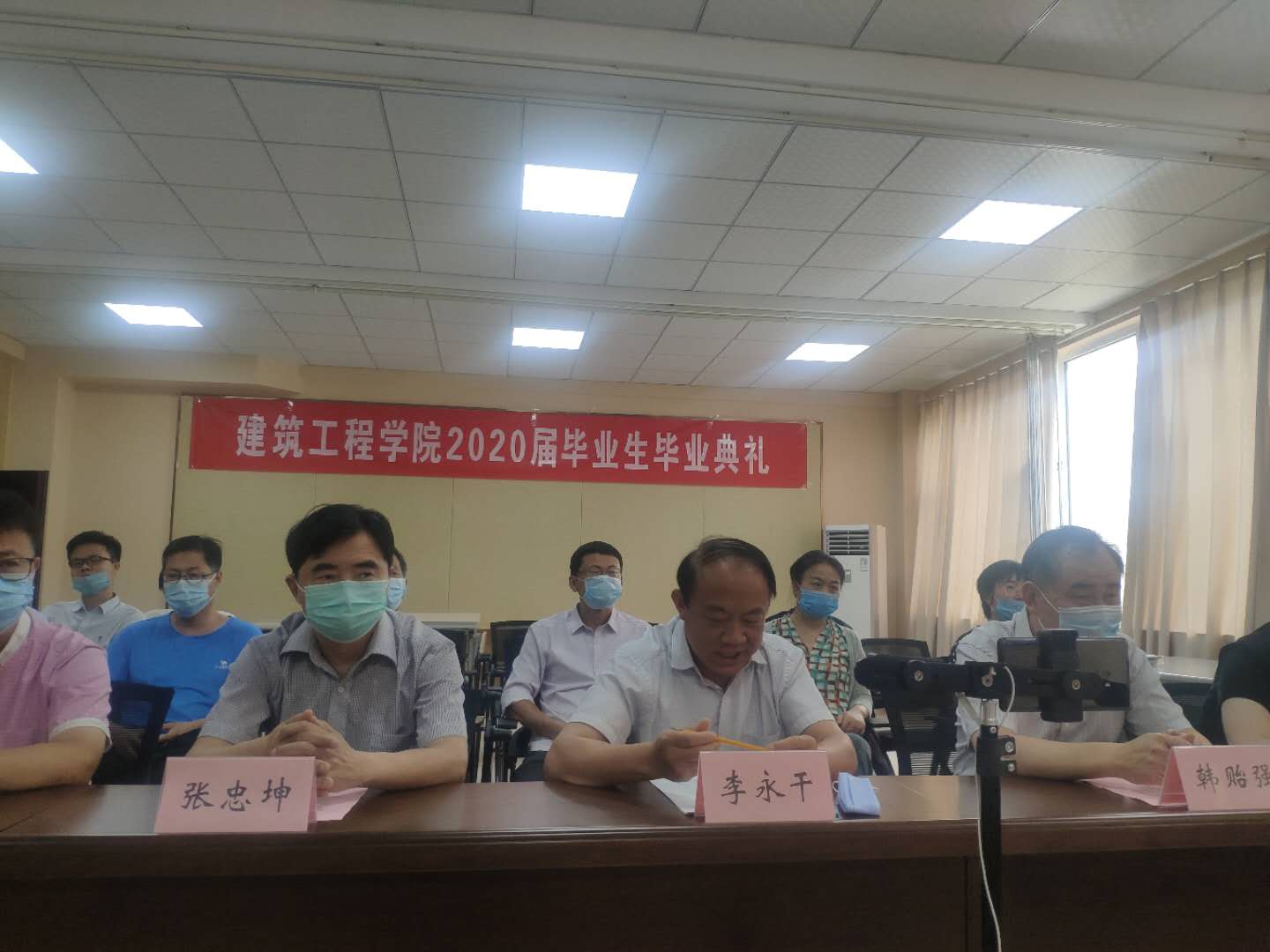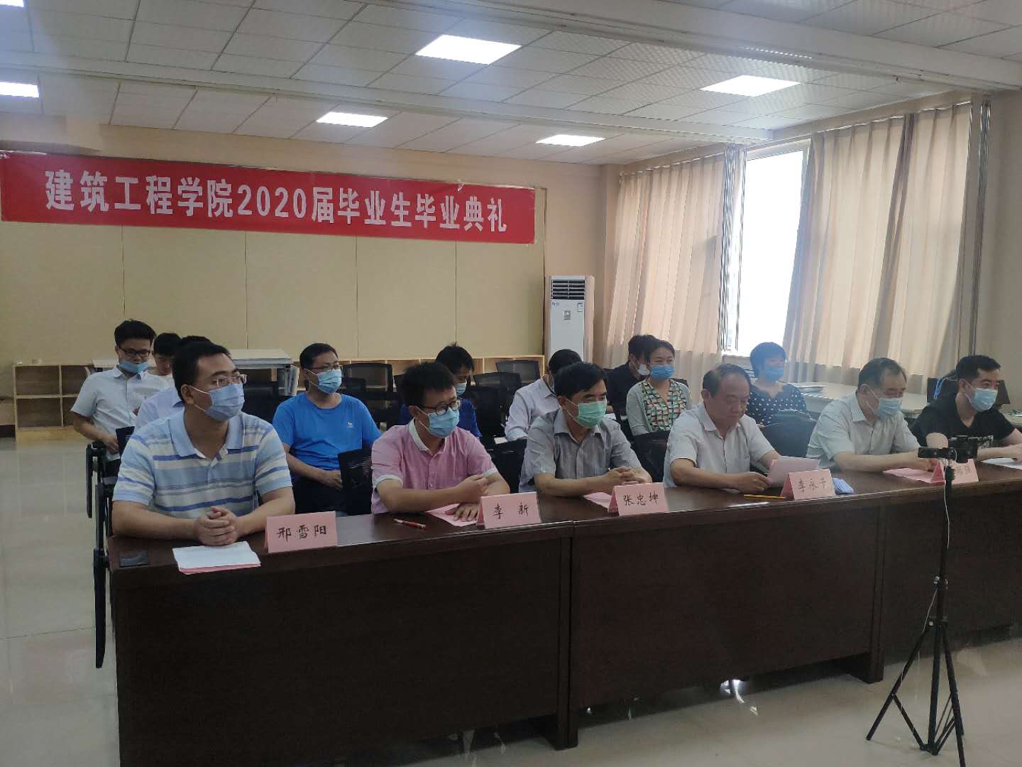 6月17日,建筑工程学院2020届毕业生毕业典礼隆重举行,党总支书记李永干、院长张忠坤、教师代表和班主任出席,全体毕业生通过网络观看了直播。