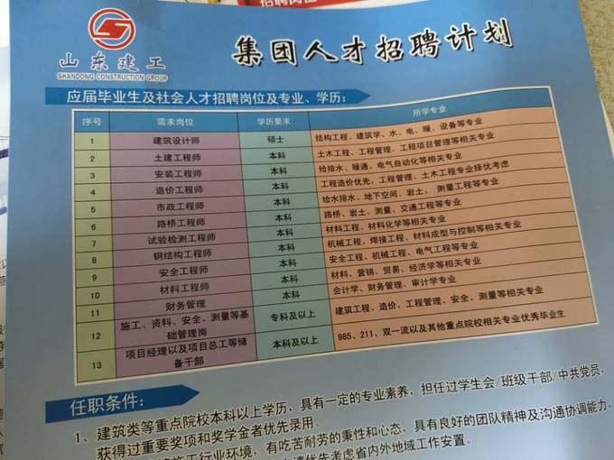 为了更好地拓宽毕业生的就业渠道,11月5号,我院积极参与校园招聘会,山东路桥集团、中国二十二冶集团、山东三箭集团、九强集团、山东省建设建工集团五家企业集团来我校招聘人才,我院应届毕业生代表参加了此次招聘会。