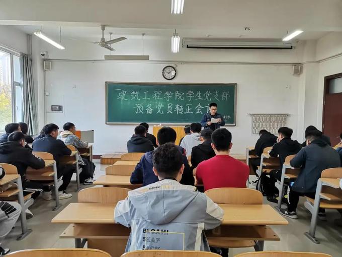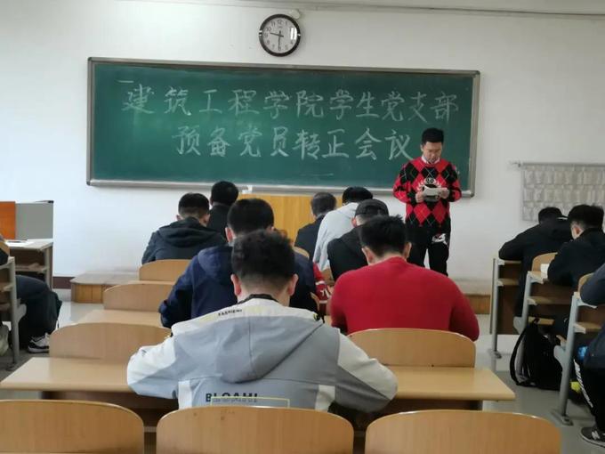 10月30日,建筑工程学院举办学生党支部预备党员转正会议,出席会议的有党总支副书记韩贻强、党支部书记董志强、全体辅导员。党支部27名党员、32名预备党员参加了此次会议。