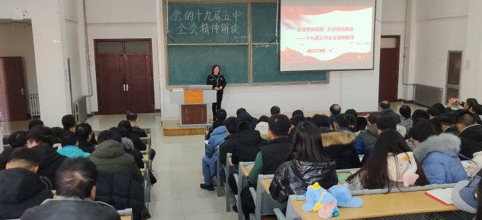 为深入学习宣传贯彻党的十九届五中全会精神,12月15日建筑工程学院在八号教学楼305教室举办了党的十九届五中全会精神解读报告会,邀请滨州学院理论宣讲团成员,省优秀思政课教师,马克思主义学院刘娟老师作了题为《决定性的成就 历史性的跨越——党的十九届五中全会精神解读》的报告会,全体教职工、学生党员、20年入党积极分子参加了报告会。