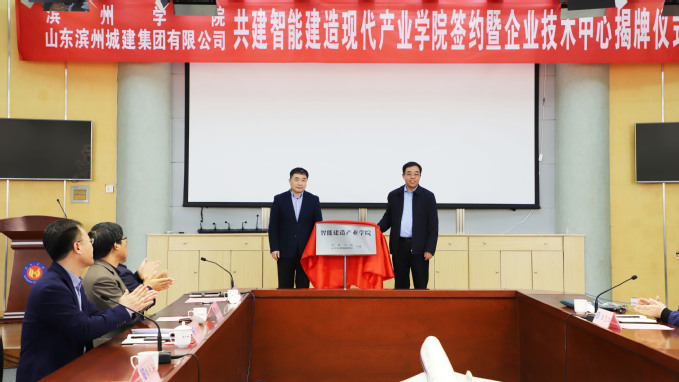 3月30日,我院与山东滨州城建集团有限公司共建智能建造现代产业学院签约暨企业技术中心揭牌仪式在学苑会堂第三报告厅举行。山东滨州城建集团有限公司党委书记、董事长曹庆训,党委副书记钊京涛、副总经理王志江,我校党委副书记、校长李长海,党委委员、副校长郭新伟出席仪式。我校教务处、合作发展处、建筑工程学院负责人及部分教师参加了活动。