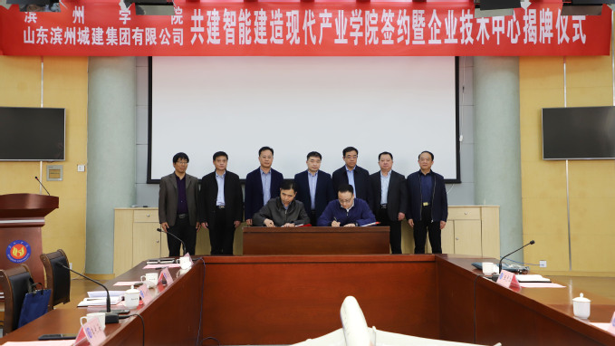 建筑工程学院负责人与王志江分别代表我校、山东滨州城建集团有限公司签署了共建智能建造现代产业学院协议书。