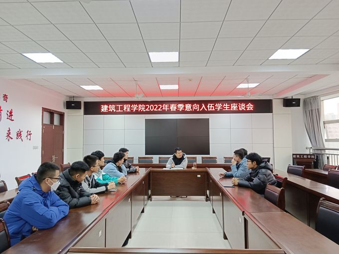 12月16日,建筑工程学院于学院会议室举办2022年春季意向入伍学生座谈会,凛冽的寒风抵挡不住建工学子对参军入伍的热情和向往,有意愿参军入伍的学生纷纷前往参加宣讲活动。会议由学生科科长董志强主持。