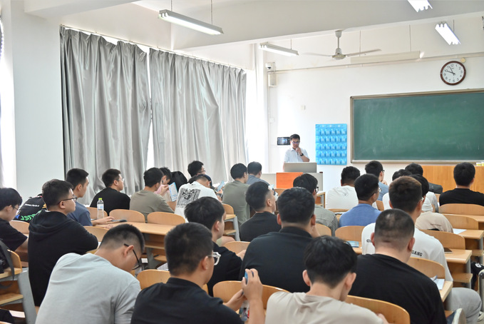 本场宣讲由中铁十四局曹杰经理主持,首先向同学们放映了关于盾构机采访的宣传片,让同学们了解中铁十四局的盾构机员工的工作内容、环境和生活状态。然后观看了《一路同行》宣传片,介绍了中铁十四局所获得的成就,并介绍了未来的走向。