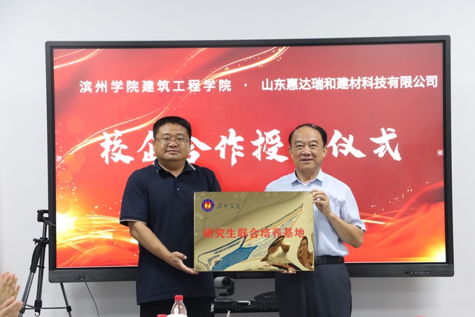 随后双方在集团公司进行了座谈,座谈会由周炜主持。李永干介绍了滨州学院的发展历程和办学特色,邢雪阳从学科专业建设、学生培养、科学研究、实验平台等方面介绍了建筑工程学院的基本情况。随后双方针对新型建筑材料、固废再利用、学生培养基地、研究生联合培养、教育培训等方面展开了热烈讨论并达成诸多共识。座谈会后进行了研究生联合培养基地和学生实践基地授牌仪式。