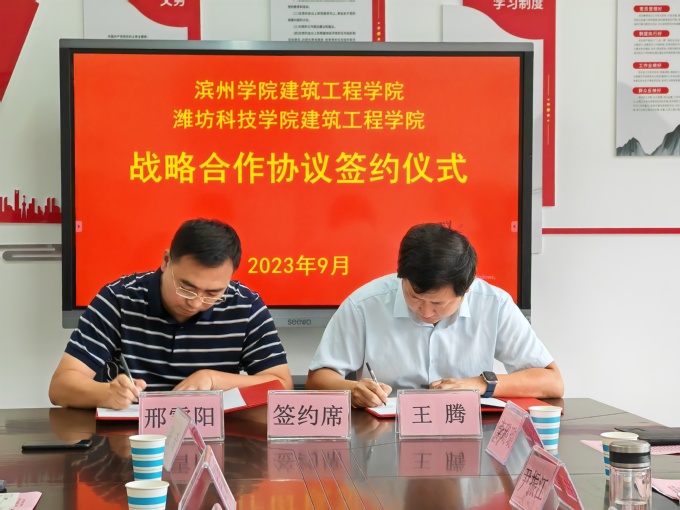 9月25日下午,我院与潍坊科技学院建筑工程学院战略合作协议签约仪式在潍坊举行。我院党总支书记李永干,院长邢雪阳,潍坊科技学院建筑工程学院院长王腾,党支部书记张培明等出席签约仪式。