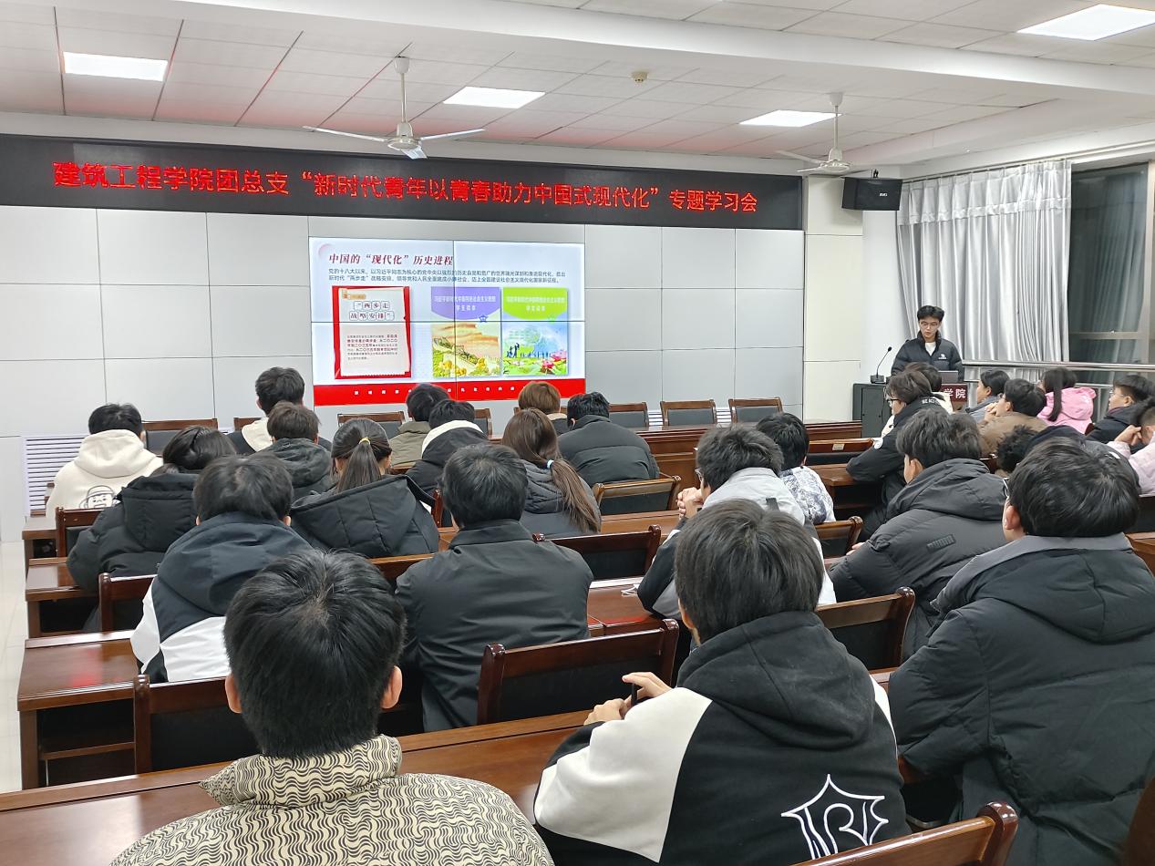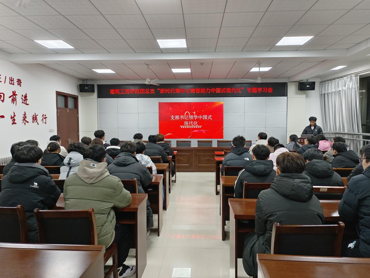 为深入学习党的二十大精神,帮助同学们深刻理解中国式现代化的丰富内涵与特征,12月10日,我院团总支召开了“新时代青年以青春助力中国式现代化”专题学习会,团总支书记董志强主持,2023级智能建造专业学生参加了学习会。