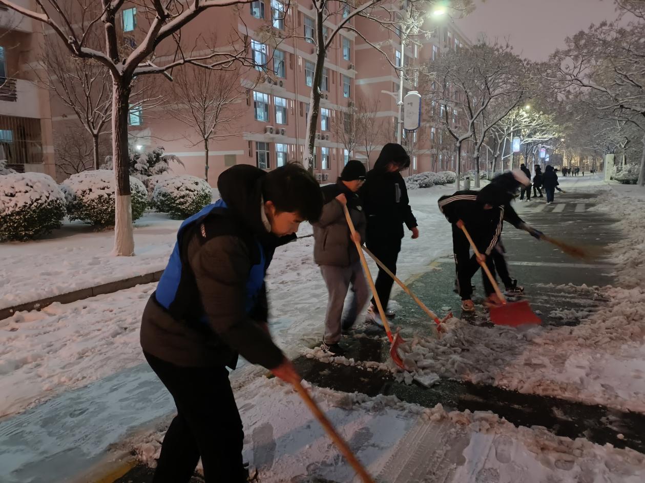 寒冬已至,大雪纷飞。12月14日,一场大雪如约而至,雪后的滨州学院银装素裹,白雪皑皑,纷飞的雪花将校园装点出如诗如画的美。为保障雪后校园内车辆、行人通行安全,12月14日晚,我院组织志愿者连夜开展扫雪除冰志愿服务活动。