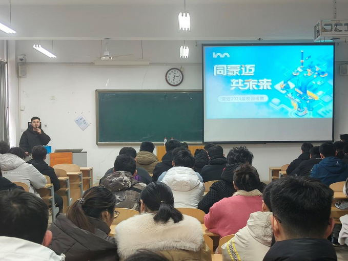 宣讲会伊始,豪迈集团招聘经理宋志浩播放了集团宣传片并介绍企业概况。宋经理从公司的产品项目、所涉及的领域、员工入职发展体系、薪资情况、福利待遇等,向同学们充分讲解了企业的主要业务和入职环境。同时,招聘负责人还分享了企业环境与企业文化,旨在为员工提供更广阔的发展空间与舒适的生活环境。最后,招聘负责人详细介绍了招聘流程和岗位需求,诚挚邀请同学们的加入。宣讲结束后,同学们积极与宋经理交流沟通,递交简历。