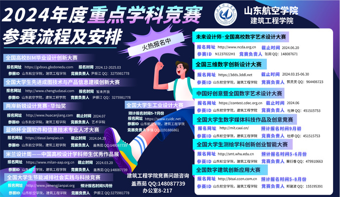 大学生学科竞赛是推动教育教学改革,培养提高大学生专业能力、实践能力、创新能力和综合素质,促进大学生个性发展的群众性科技活动。2023年3月22日,中国高等教育学会高校竞赛评估与管理体系研究专家工作组发布了《2023全国普通高校大学生竞赛分析报告》竞赛目录,该目录涵盖了84个国家级大学生竞赛。学院高度重视大学生学科竞赛工作,力争把创新创业教育贯穿人才培养全过程,请各位老师查看并积极指导学生参加相关竞赛。