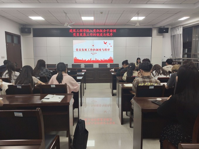 为帮助积极分子深入理解党的制度建设,明确入党流程,坚定理想信念,为成为一名合格的共产党员打下坚实的基础。4月29日,建筑工程学院在9#215室举办了第四次入党积极分子培训活动,会议由辅导员李璐璐老师主持。