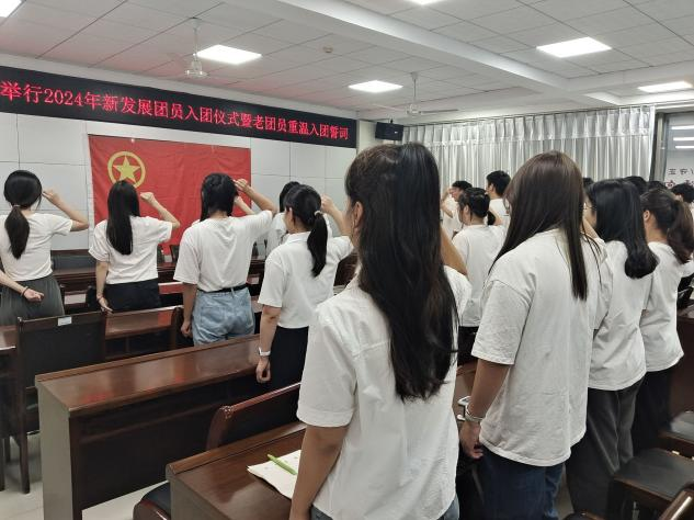 为强化新时代共青团员的使命担当,增强共青团员的团员意识,激励广大团员牢记党的宗旨,5月31日,我于9教215会议室举行2024年新发展团员入团仪式暨新老团员重温入团誓词活动。活动由辅导员李素娟主持,14名新发展团员和15名老团员代表参加。