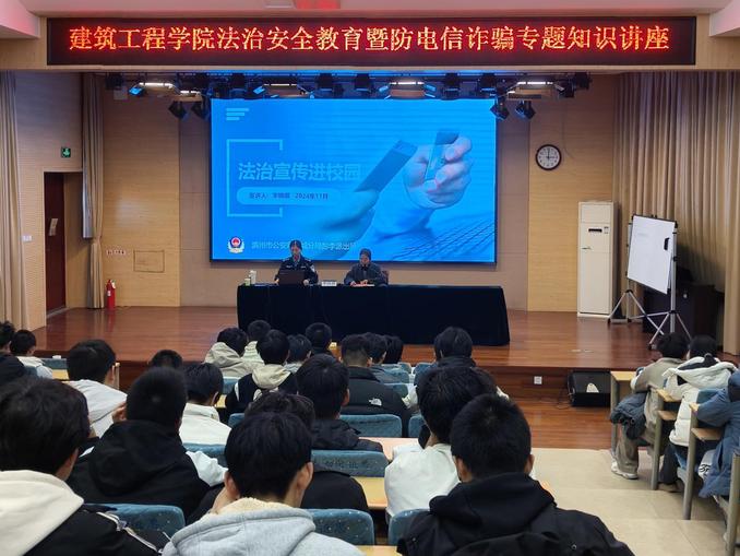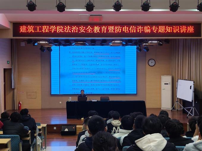 为深入贯彻落实防范电信网络诈骗工作,增强师生的安全防范意识,有效预防各类信息诈骗案件的发生,11月19日,建筑工程学院邀请滨州市公安局滨城分局民警李晓娜为2024级新生开展法治安全教育暨防电信诈骗专题知识讲座,学生科辅导员主持会议。