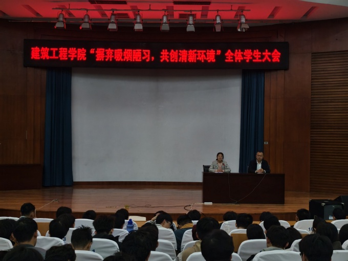 为了深入推进无烟校园建设,提高学生对吸烟严重危害个人健康的认识,从根本上杜绝个别学生在公共场合特别是宿舍内吸烟的违法违规行为,11月12日晚,建筑工程学院在明德报告厅举行了以“摒弃吸烟陋习,共创清新校园”为主题的校园控烟行动月启动仪式。