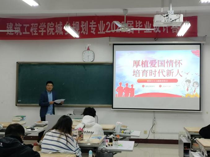 为深入学习贯彻党的二十大和二十届三中全会精神,切实落实立德树人根本任务,弘扬爱国主义教育,提升学生民族自豪感。建筑工程学院于11月24日召开爱国主义教育主题班会,我院全体学生参加此次班会。