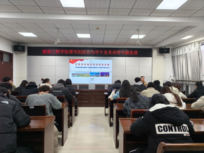 为提高党员的政治素质,增强党性修养,12月6日,建筑工程学院院长邢雪阳在9教215室以《高质量党建引领高质量发展》为题,为学生党员讲授党课。