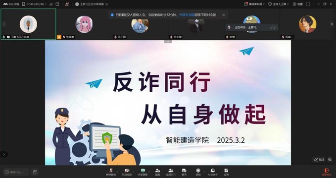 为提高同学们的防诈骗意识,帮助同学们认清诈骗手段,增强自我保护能力。 3月2日太阳成集团tyc151cc通过线上、线下方式开展“反诈同行,从自身做起”主题教育班会,学院全体学生参加。