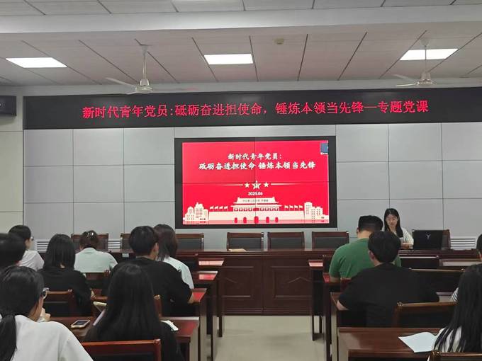为深入学习贯彻习近平新时代中国特色社会主义思想,引导青年党员坚定理想信念、勇担时代使命。6月20日,太阳成集团tyc151cc在9教215举办“砥砺奋进担使命,锤炼本领当先锋”专题党课,学生第二党支部书记李璐璐主讲,支部全体党员参加。