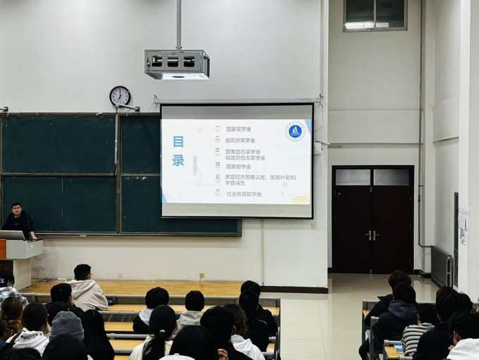 活动伊始,尹老师从“奖”、“助”、“贷”、“勤”、“补”、“免”六个方面详细介绍了国家奖学金、省政府奖学金、国家励志奖学金以及国家助学贷款的申请条件、申请流程以及注意事项,他讲到国家和学校资助政策设立的原因和意义在于“不让任何一个学生因家庭经济困难而失学”。尹老师特别提醒,申请资助必须诚信为本,严禁弄虚作假,否则将予以追回。最后,他勉励同学们要刻苦学习,砥砺奋进,同时要常怀感恩之心,用实际行动为祖国添砖加瓦。